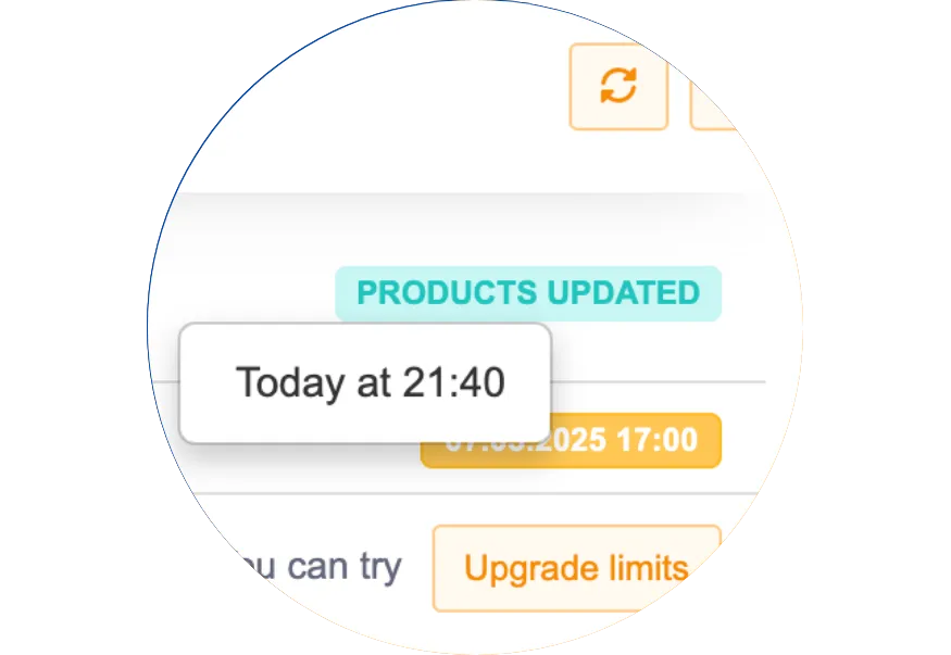 Feed- en bestelsynchronisatie kan elke 5, 15 of 60 minuten draaien, afhankelijk van uw abonnement. Bestelimport is automatisch voor ondersteunde marktplaatsen.