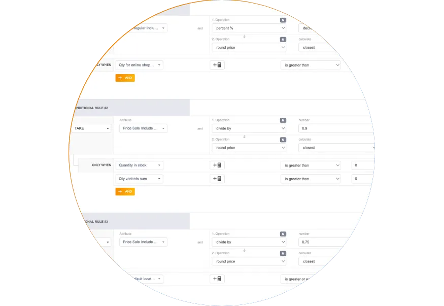 Met Koongo's regeleditor kunt u attribuutwijzigingen automatiseren zoals prijsaanpassingen, tekstopmaak of het samenvoegen van velden — geen programmering vereist.
